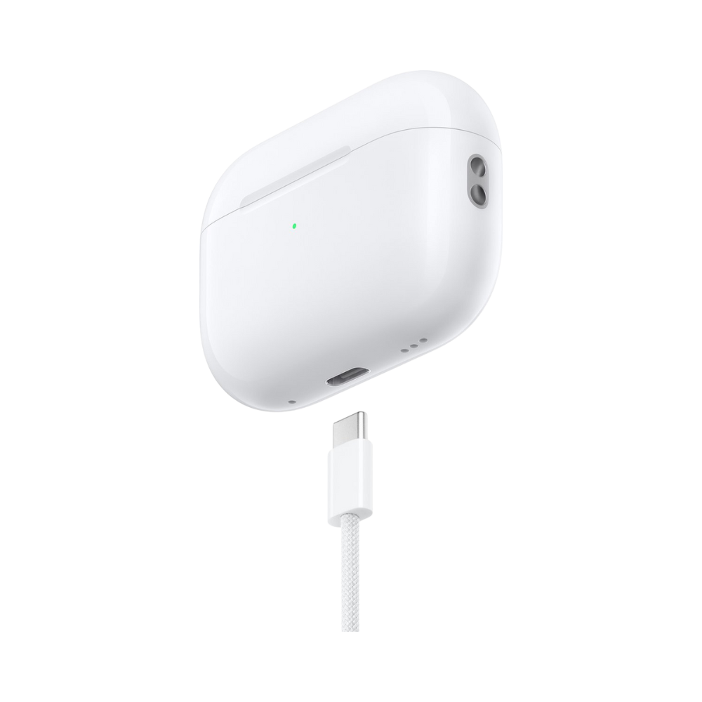 AirPods Pro 2 met USBโC bieden tot 2x meer actieve ruisonderdrukking dan de vorige generatie. Met de transparantieยญmodus hoor je wat er om je heen gebeurt en Adaptieve audio stemt de ruisonderdrukking nu dynamisch af op je omgeving. Gespreksdetectie dempt het achtergrondgeluid en versterkt de stemmen van degenen met wie je praat. Na รฉรฉn keer volledig opladen gaan de batterijen tot 6 uur mee en door te swipen regel je makkelijk het volume. Dan is er ook nog de MagSafeโoplaadcase, met โNauwkeurig zoekenโ, een ingebouwde speaker en een bevestiging voor een draagkoord, nu met een USB-C ingang.