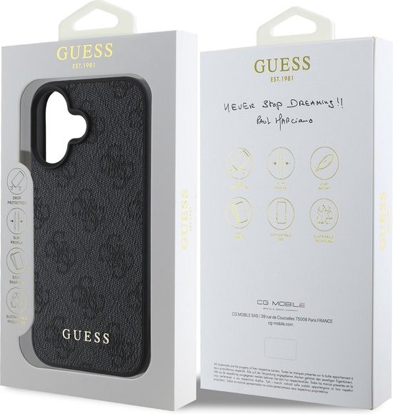 Big Logo Design:De achterkant van het hoesje heeft een opvallend groot Guess-logo in het klassieke 4G-patroon, wat het een trendy en herkenbare uitstraling geeft. Dit iconische logo benadrukt de modieuze en luxueuze uitstraling van het merk Guess.