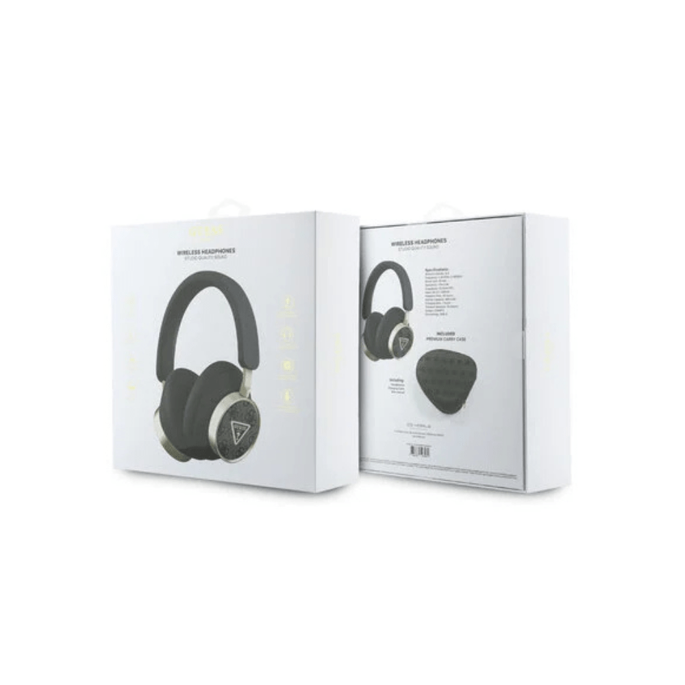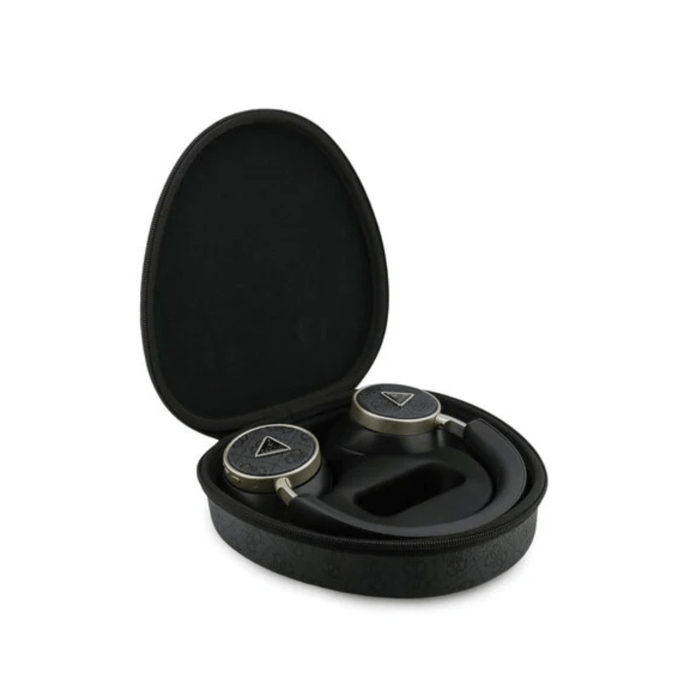 Guess Bluetooth Koptelefoon – ENC – PU Leather met opbergdoos – 4G Triangle Logo – Zwart