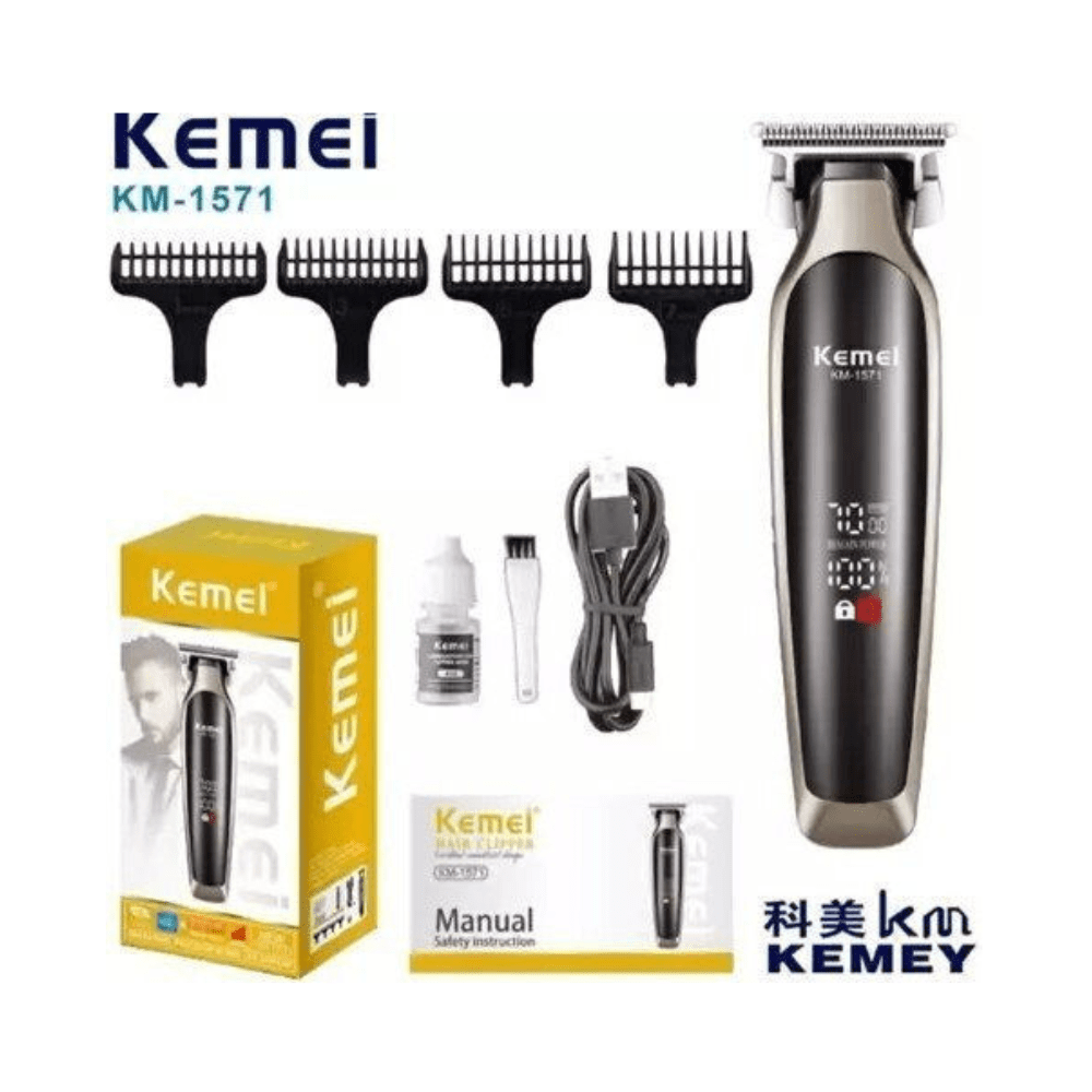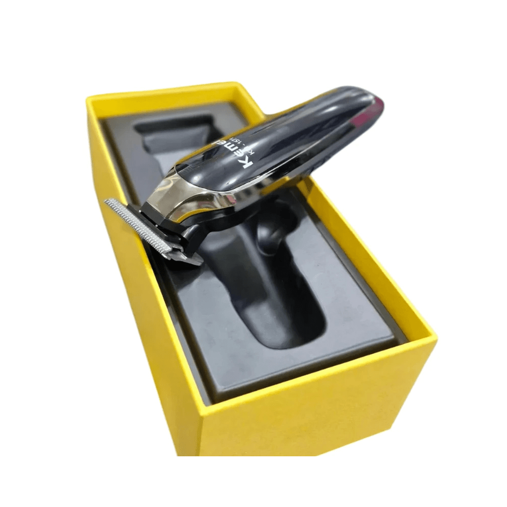 De Kemei KM-1571 is een krachtige en stijlvolle professionele trimmer, ideaal voor nauwkeurig trimmen, contouren en strakke afwerkingen. Dankzij het ergonomische design en het heldere LCD-display combineert deze trimmer prestaties met gebruiksgemak.