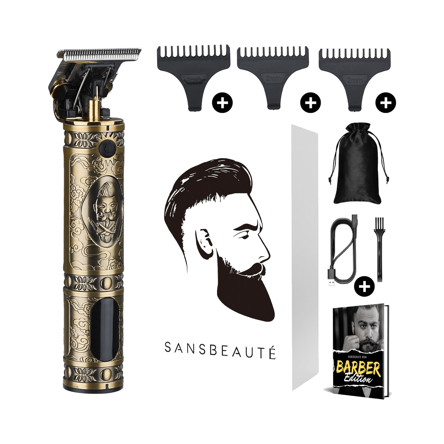 Deze luxe baardtrimmer of tondeuse kan gebruikt worden om je baard te trimmen of het hoofdhaar te scheren. Twee in een dus! De trimmer ligt fijn in de hand en ziet er daarnaast nog eens stijlvol uit dankzij de gouden kleur en graveringen. De keramische kop bevat scherpe mesjes waardoor jij in een handomdraai je baard of hoofdhaar kan trimmen. De tondeuse word meegeleverd met 3 verschillende opzetkammetjes van 1mm, 2mm, en 3mm, zo heb je zelf in de hand hoe lang de haren moet blijven. Aangenaam, efficiรซnt en snel scheren is wat je kan verwachten van de baardtrimmer.