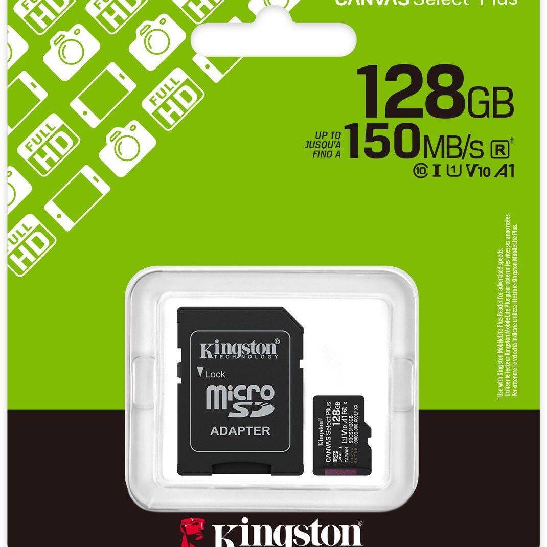 De Canvas Select Plus microSD van Kingston is compatibel met Android-apparaten en levert verbeterde prestaties van A1-klasse. De kaart biedt een betrouwbare snelheid en grotere capaciteiten tot 1TB** om apps sneller te laden en foto’s en video’s vast te leggen. De krachtige, snelle en duurzame Canvas Select Plus microSD is ontworpen op betrouwbaarheid, zodat je hem overal mee naartoe kunt nemen met de zekerheid dat je foto’s, video’s en bestanden beschermd zijn. Beschikbaar met levenslange garantie.