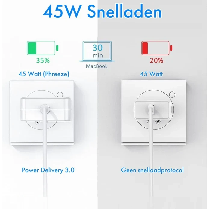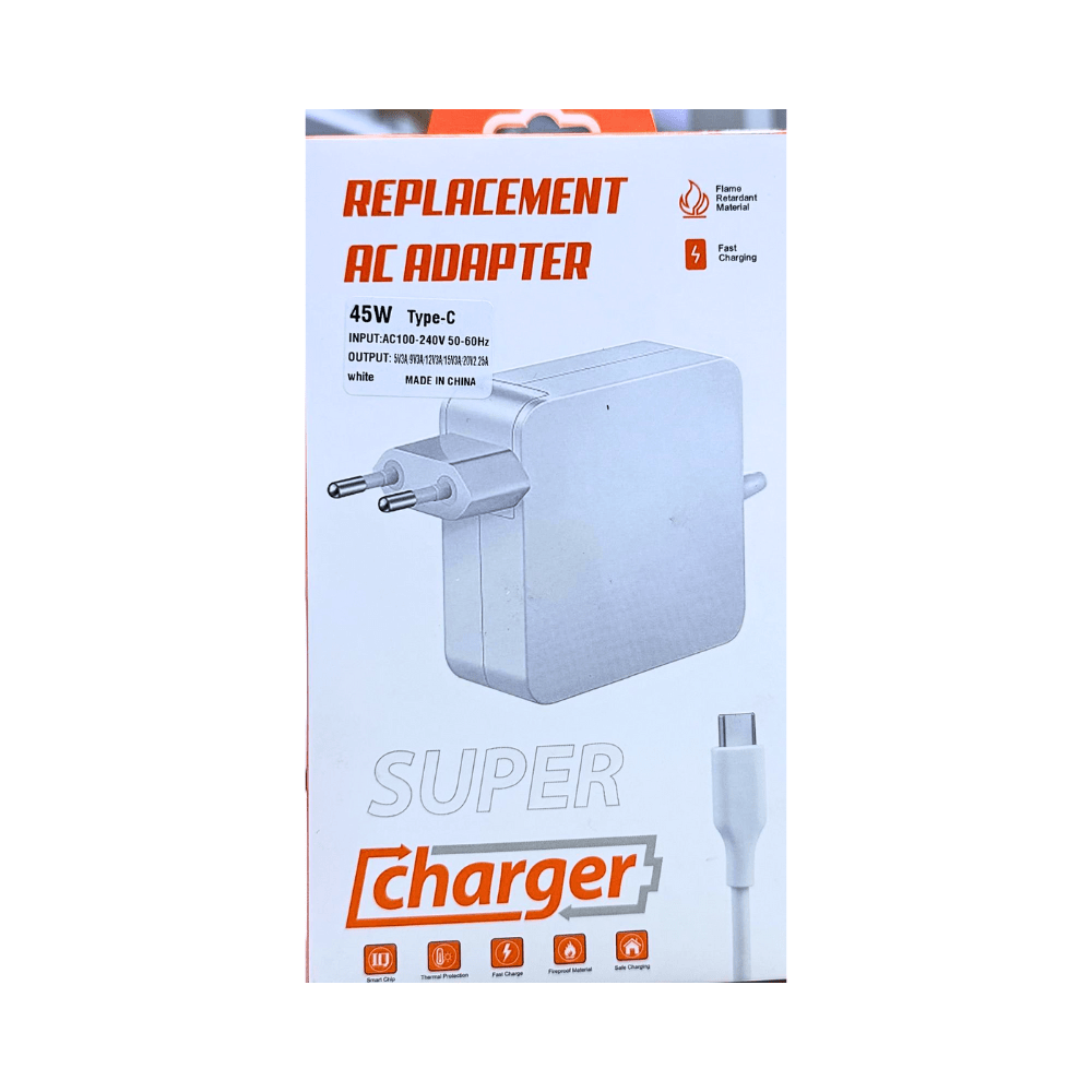 De Replacement AC Adapter 45W Type-C is de perfecte vervanger voor uw originele oplader, ontworpen voor een betrouwbare en snelle oplading van uw Type-C-apparaten. Met een vermogen van 45W biedt deze adapter uitstekende prestaties voor het opladen van laptops, tablets, smartphones en andere apparaten die compatibel zijn met de Type-C poort.