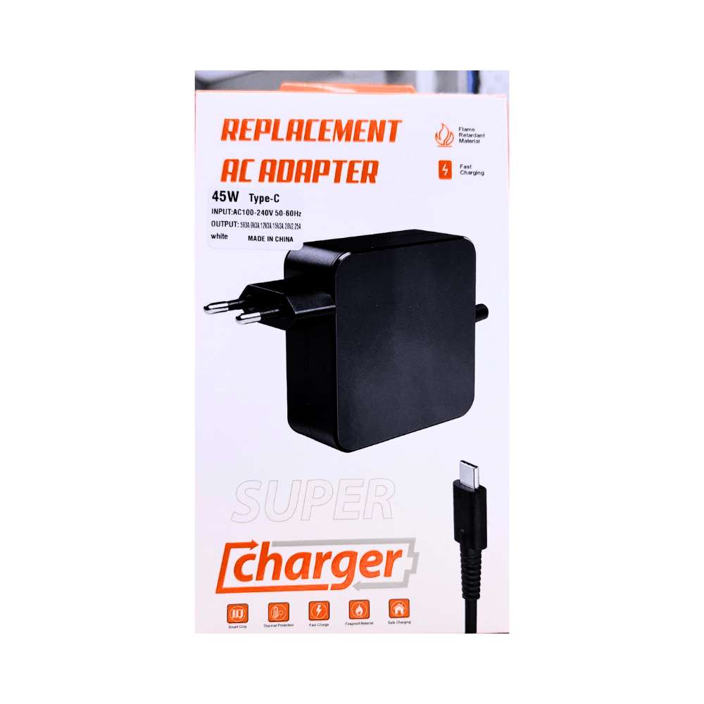 De Replacement AC Adapter 45W Type-C is de perfecte vervanger voor uw originele oplader, ontworpen voor een betrouwbare en snelle oplading van uw Type-C-apparaten. Met een vermogen van 45W biedt deze adapter uitstekende prestaties voor het opladen van laptops, tablets, smartphones en andere apparaten die compatibel zijn met de Type-C poort.