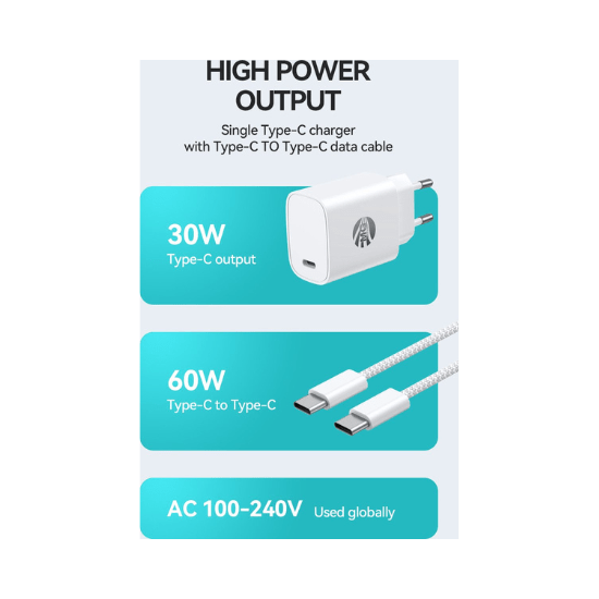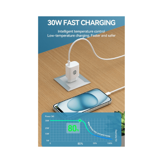 MG CDA139 – Adapter met Kabel – GaN Technologie – 30W Adapter – 60W Kabel – Super Fast Charging – Wit