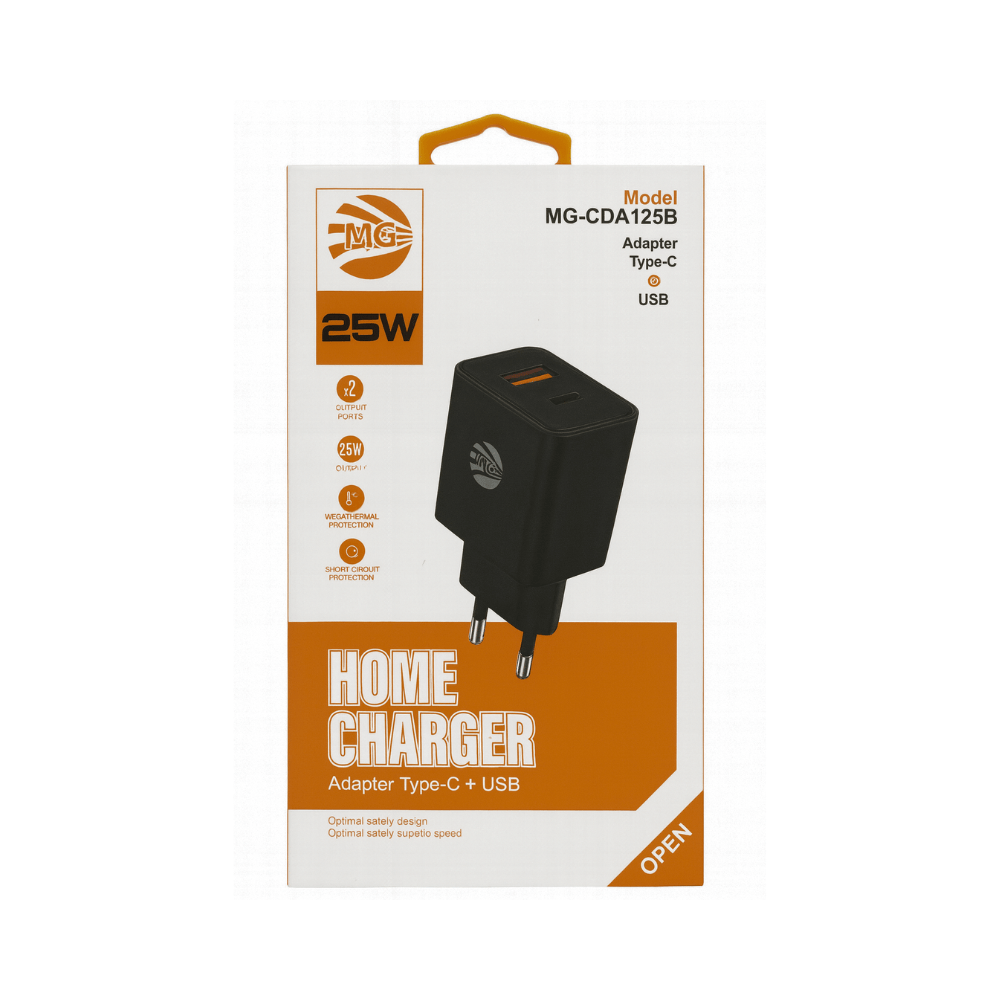 De MG-CDA125B Home Charger is een krachtige en betrouwbare oplader die snelheid en veiligheid combineert in รฉรฉn compact ontwerp. Dankzij de dubbele poorten (USB-A en USB-C) kun je meerdere apparaten tegelijk opladen, zonder in te leveren op prestaties of efficiรซntie.