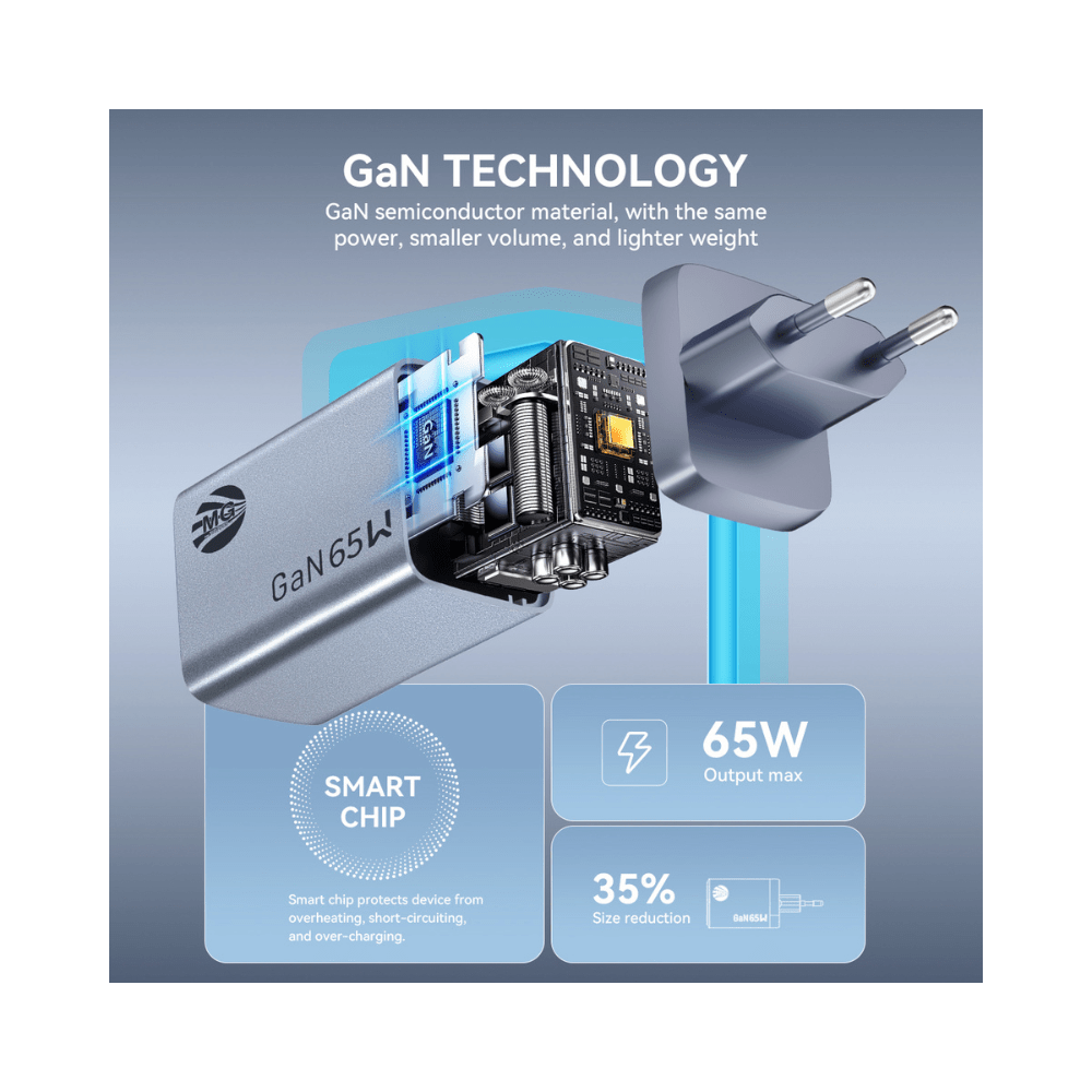 Ervaar supersnel en efficiรซnt opladen met de MG CDA241 GaN 65W Fast Charger.