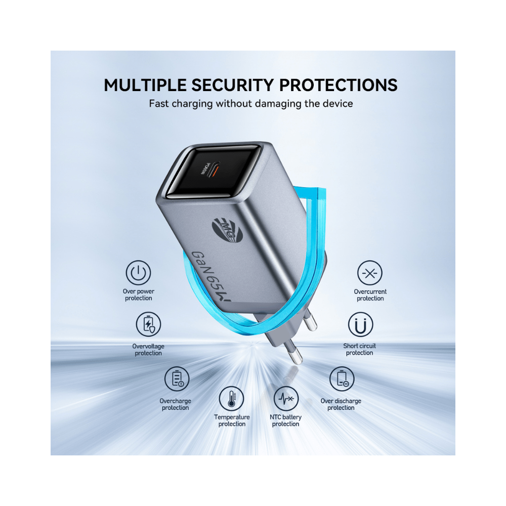 Met 65W vermogen laad je zelfs je laptop razendsnel op, terwijl je apparaat optimaal beschermd blijft tegen oververhitting, overspanning en kortsluiting.