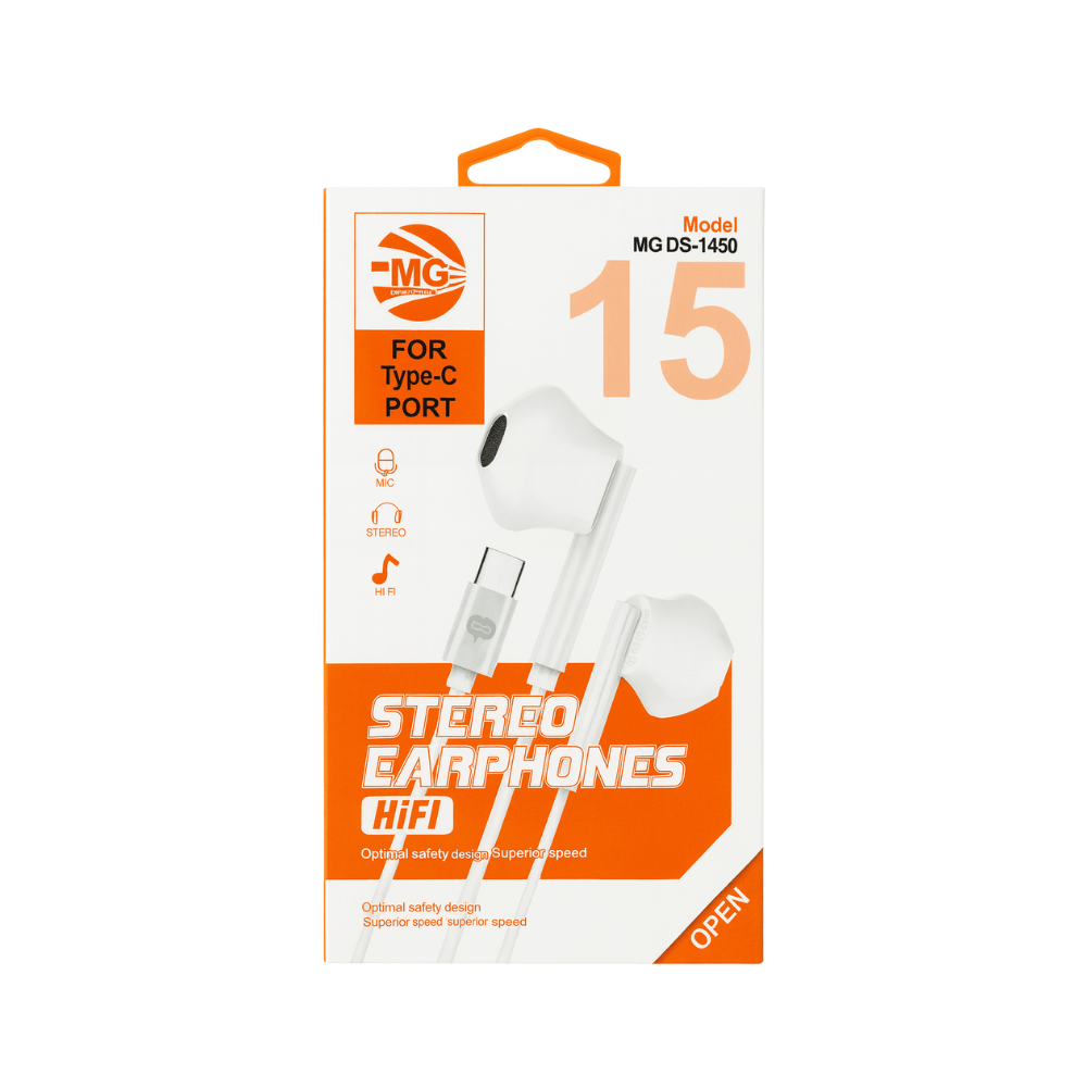 De MG DS-1450 Stereo Earphones zijn ontworpen voor apparaten met een USB Type-C aansluiting en bieden een combinatie van helder Hi-Fi geluid, duurzaam design en optimaal draagcomfort. Ideaal voor dagelijks gebruik โ of je nu muziek luistert, belt of videoโs bekijkt.