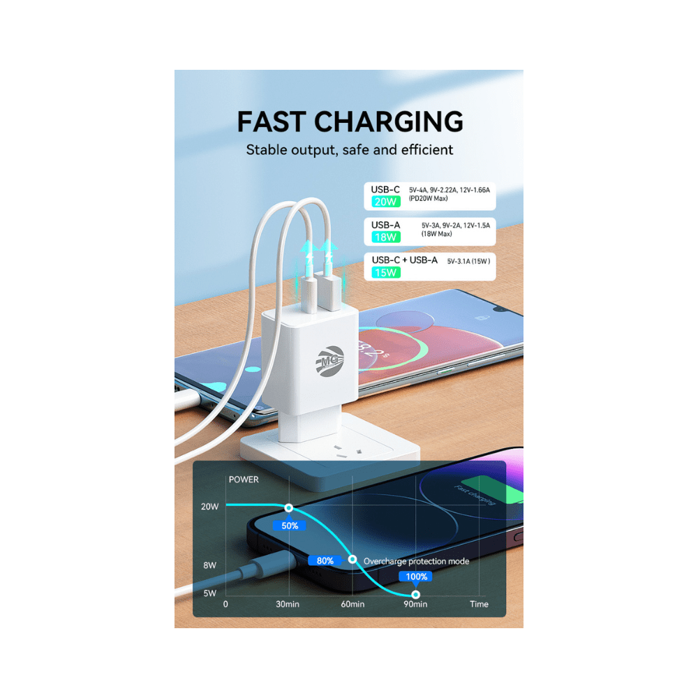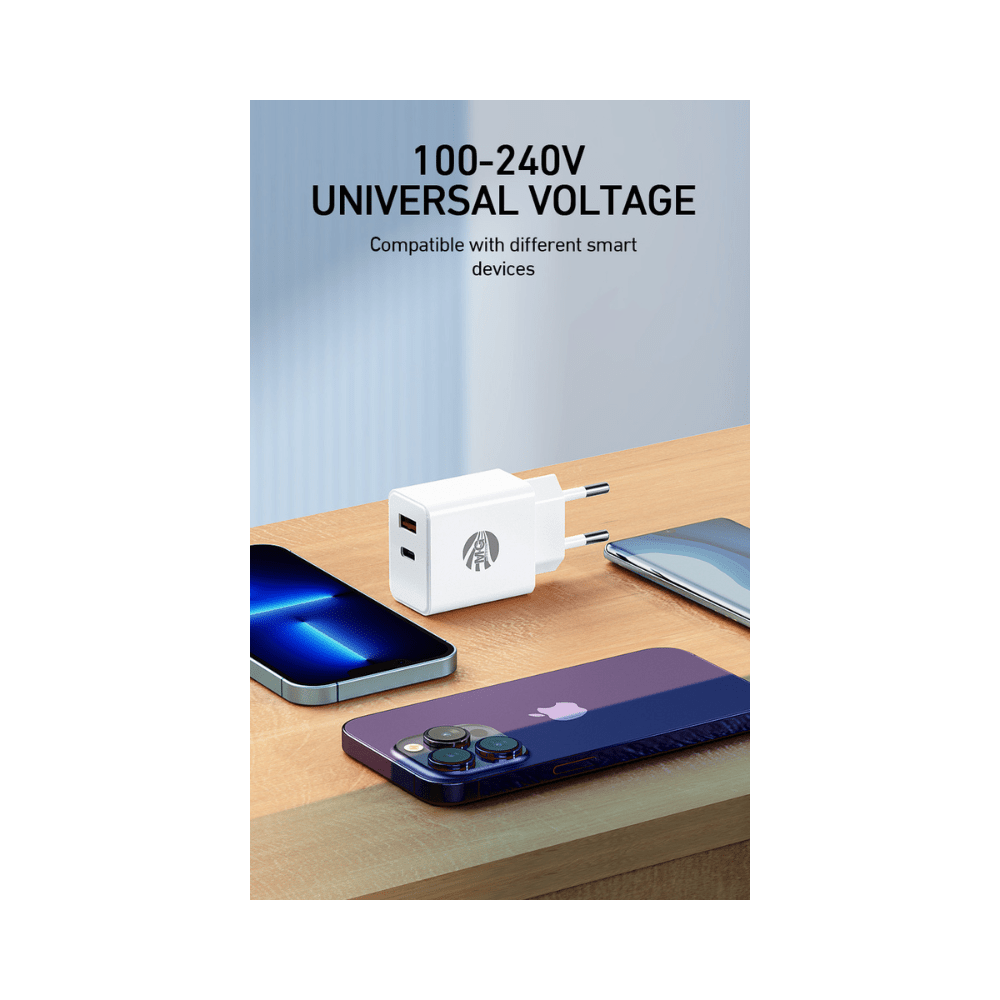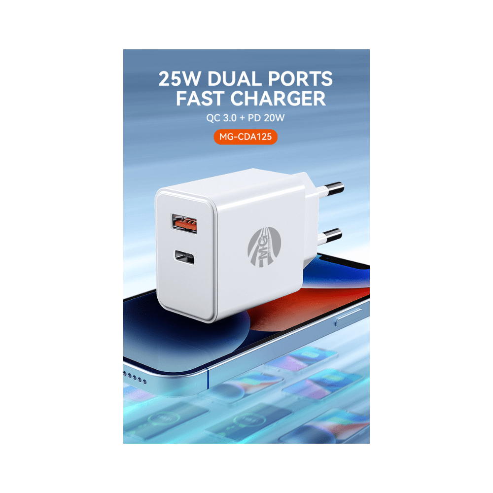 Op zoek naar een universele USB-C + Usb adapter? Een die je apparaten snel oplaadt en niet na twee weken stuk gaat? , GaN-technologie en ondersteuning voor 25 Watt opladen ben je verzekerd van de beste USB-C + Usb adapter. Met deze adapter van MG kun je jouw smartphone, tablet, oortjes en zelfs laptop opladen. Deze adapter is universeel en kan met verschillende merken worden gebruikt.