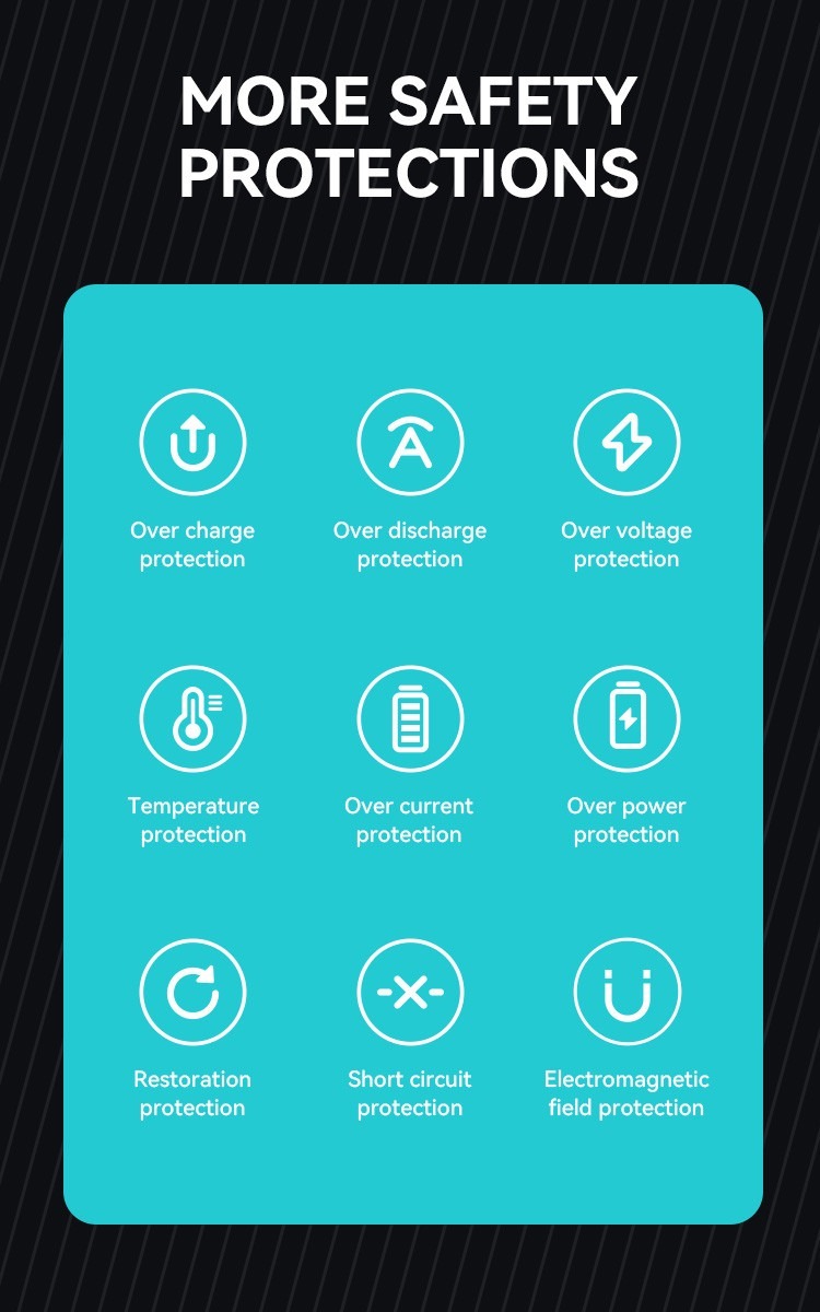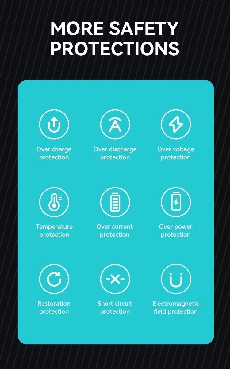 - Intelligente bescherming tegen overladen, oververhitting en kortsluiting