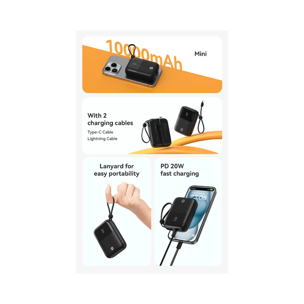 Blijf altijd verbonden met deze compacte maar krachtige powerbank van 10.000 mAh. Ideaal voor onderweg, op reis of tijdens lange dagen buitenshuis. Met voldoende capaciteit om je smartphone meerdere keren op te laden, hoef je je nooit meer zorgen te maken over een lege batterij.