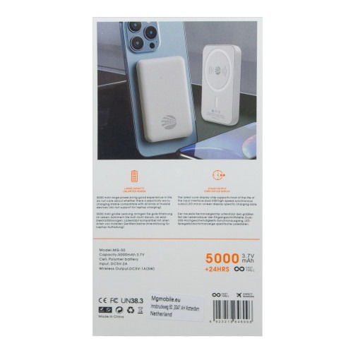 Deze krachtige en stijlvolle Powerbank van 5000mAh biedt draadloos opladen met een magnetische bevestiging, speciaal ontworpen voor apparaten die compatibel zijn met MagSafe. Of je nu je iPhone of andere Qi-compatibele apparaten wilt opladen, deze powerbank biedt je de vrijheid om zonder kabels je apparaten snel op te laden. Met 5W vermogen en ondersteuning voor Quick Charge, kun je rekenen op een snelle oplading wanneer je onderweg bent. Het compacte formaat maakt deze powerbank ideaal voor dagelijks gebruik, en dankzij de magnetische functie blijft hij stevig op zijn plaats, zelfs tijdens gebruik. Perfect voor iedereen die onderweg altijd genoeg batterij wil hebben!