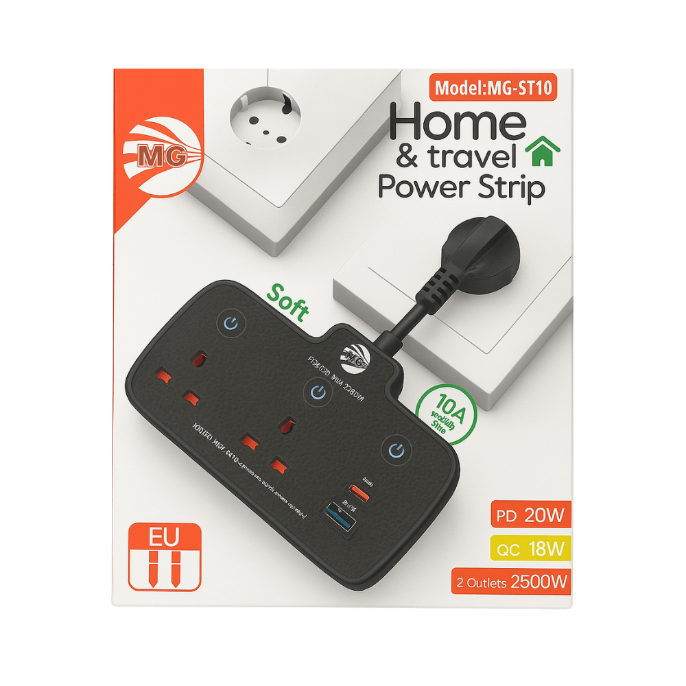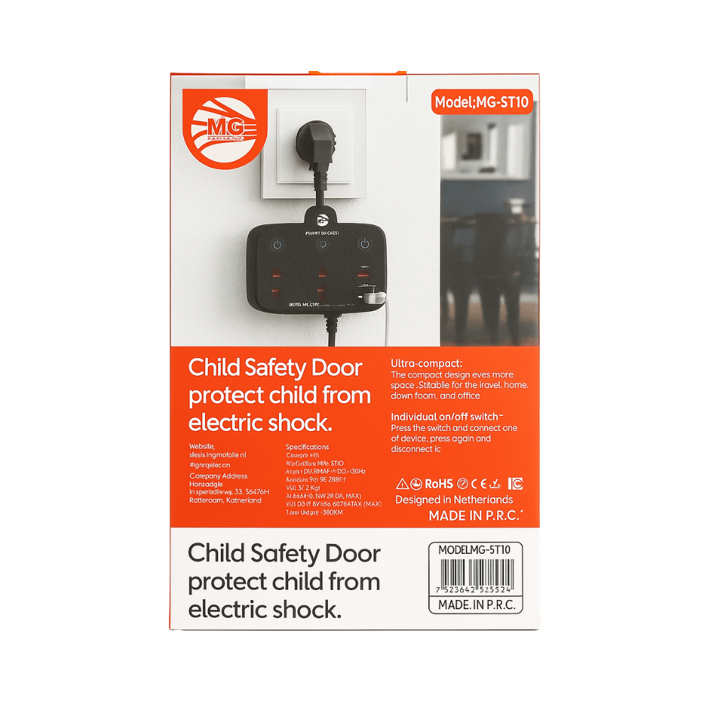 De MG-ST10 Home & Travel Power Strip is de ideale oplossing voor thuis, op kantoor of onderweg. Deze compacte stekkerdoos combineert kracht, veiligheid en gemak in รฉรฉn stijlvol ontwerp. Met meerdere aansluitingen en slimme beveiliging is hij perfect geschikt voor al je apparaten โ van laptops en smartphones tot tablets en huishoudelijke elektronica.