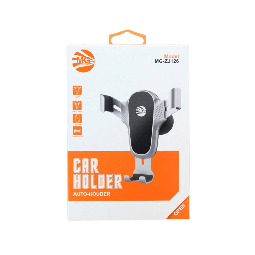 Maak veilig gebruik van de navigatiefunctie op je telefoon dankzij deze telefoonhouder van MG! De houder is gemakkelijk te bevestigen op het dashboard of de voorruit van jouw auto. Vervolgens klik je je smartphone eenvoudig in de klem van de houder. Dankzij de siliconen pads aan de binnenkant van de klem blijft jouw toestel stevig op zijn plaats en worden krassen op je telefoon voorkomen. Bovendien is de houder 360 graden draaibaar, zo heb je altijd goed zicht op je telefoon tijdens het rijden. De houder is universeel en te gebruiken met alle smartphones.