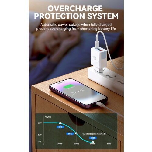 Op zoek naar een universele USB-C + Usb adapter? Een die je apparaten snel oplaadt en niet na twee weken stuk gaat? , GaN-technologie en ondersteuning voor 2,4A opladen ben je verzekerd van de beste USB-C + Usb adapter. Met deze adapter van MG kun je jouw smartphone, tablet, oortjes en zelfs laptop opladen. Deze adapter is universeel en kan met verschillende merken worden gebruikt.