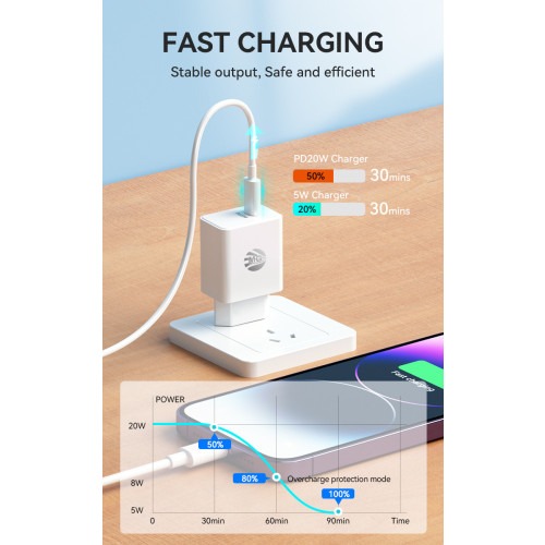 Niemand heeft tijd om lang te wachten tot zijn telefoon of tablet volledig opgeladen is. Dankzij deze USB-C snellader van MG zijn al jouw apparaten binnen no-time volledig opgeladen. De adapter is namelijk voorzien van Quick Charge en Power Delivery Technologie, waardoor jouw smartphone en tablet veel sneller opladen. Hierdoor bespaar je niet alleen tijd, maar ga je ook nooit de deur uit met een lege batterij.