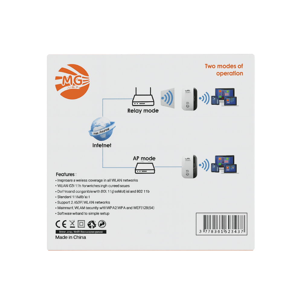 De MG-WIFI70 WiFi Repeater biedt een betrouwbare oplossing om dode WiFi-zones te elimineren. Of je nu werkt, streamt of gamet โ geniet overal van een snelle en stabiele internetverbinding met รฉรฉn druk op de knop.